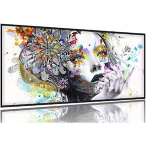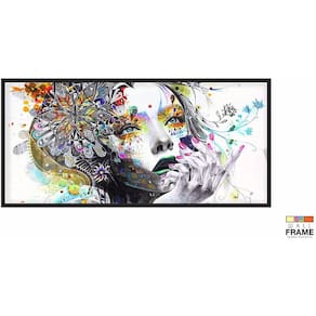 Quadro Decorativo Abstrato Mulher Colorido 130x60 Moldura Preta 2x2