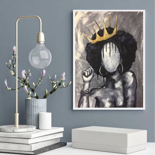 Quadro decorativo abstrato negra com coroa 24x18cm - com vidro Moldura: madeira branca Informações do produto tire todas as suas dúvidas no descritivo abaixo: decoração para quarto, sala, cozinha, escritório, área gourmet e muito mais. Chega de paredes vazias medidas - cada peça tem 24x18cm a5 . Material do papel - papel fotográfico brilhante de altíssima resolução acabamento - todos os quadros são acompanhados de vidro para proteção da imagem. - moldura em madeira maciça na cor preta ou branca conforme produto escolhido e pendurador . - os quadros são embalados de forma segura com plástico bolha com camada dupla de acordo com o tamanho dos quadros. Garantia - garantia de 3 meses. Meu quadro chegou. Como posso fixá-lo Você precisa apenas de um martelo e um prego, pois os quadros já vão acompanhados de penduradores. Esta é a forma mais indicada. Como posso limpar meu quadro A limpeza é feita como um móvel comum da sua casa. Apenas um pano seco ou espanador são suficientes para tal