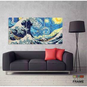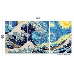 Quadro Decorativo Abstrato Ondas Sakura Japão 120x60 3pç
