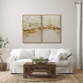 Quadro Decorativo Abstrato Modelo Rachaduras no Solo com 2 telas 60x90cm para Sala, Quarto, Banheiro, Escritório, Hall, Hall de Entrada, Estúdio, Salão, Clínica.