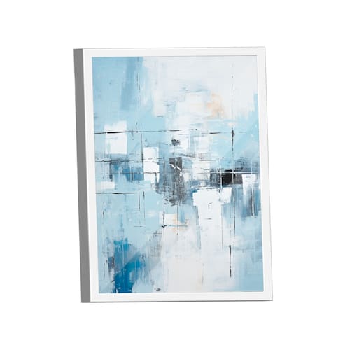 Quadro Decorativo Abstrato Tons Azul Cinza Moldura Branca e Vidro - Ultra Grande 150x100 -