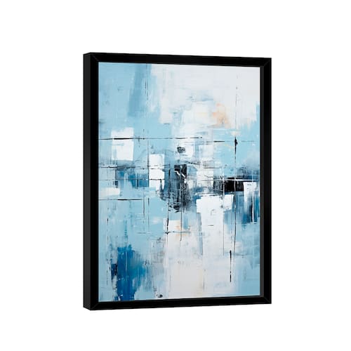 Quadro Decorativo Abstrato Tons Azul Cinza Moldura Preta - Ultra Grande 150x100 -