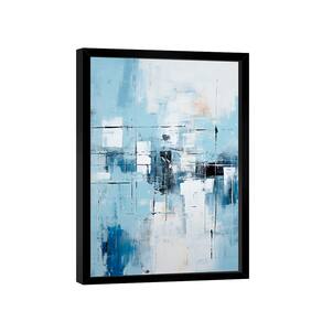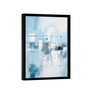 Quadro Decorativo Abstrato Tons Azul Cinza Moldura Preta e Vidro - Gigante 180x105 -