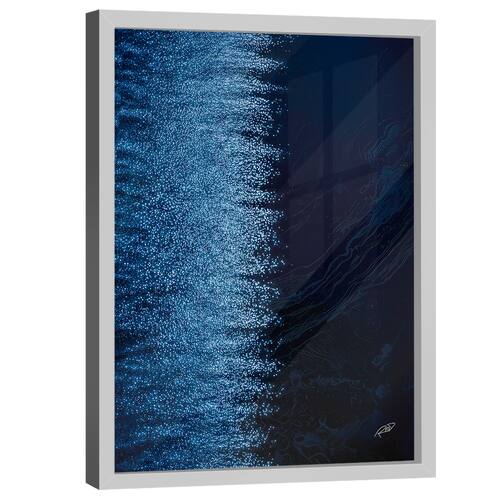 Quadro Decorativo Abstrato Tons de Azul Moldura Branca e Vidro - 150x100cm -