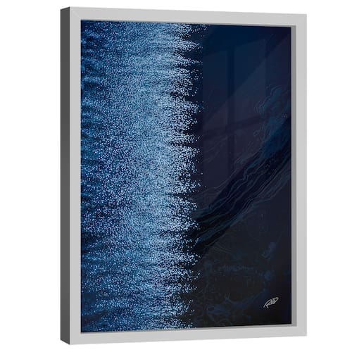 Quadro Decorativo Abstrato Tons de Azul Moldura Branca e Vidro - 180x105cm -