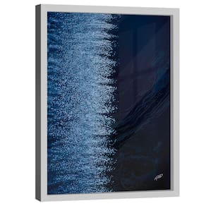 Quadro Decorativo Abstrato Tons de Azul Moldura Preta e Vidro - 60x40cm -
