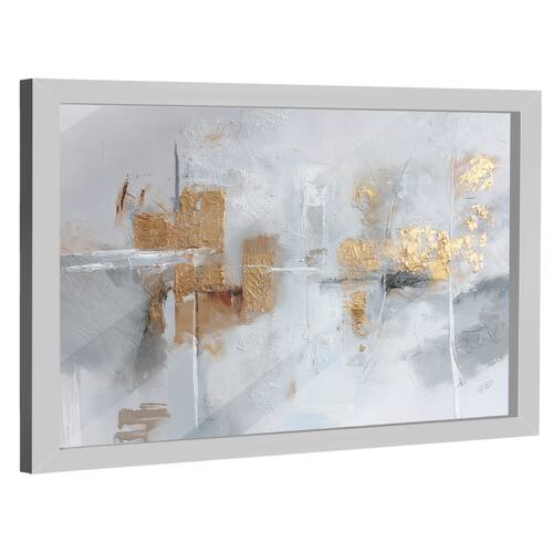 Quadro Decorativo Abstrato Tons Modernos Moldura Branca e Vidro - 84x54cm -