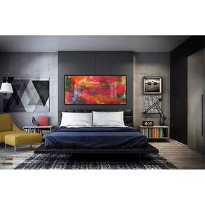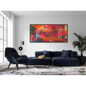 Quadro Decorativo Abstrato Vermelho 130x60 Moldura Preta 2x2