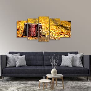 Quadro decorativo Acordeon Mosaico Dimensões do Produto: Tamanho total do produto: 125x60 cm Comprimento x Altura 02 Peças menores: 25x40 cm 02 Peças Médias: 25x50 cm 01 Peça Central: 25x60 cm. Espaçamento entre as peças de 1 cm - Tamanho total com espaçamentos 129x60 cm. Espessura do produto - 9 mm