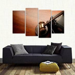 Quadro Decorativo Advocacia Martelo De Juiz Tecido 4 Peças 1