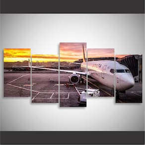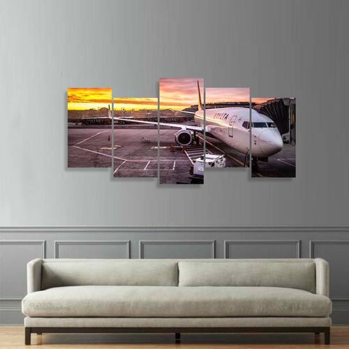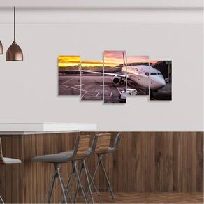 Quadro decorativo Aerporto Aviões Mosaico 5 Peças