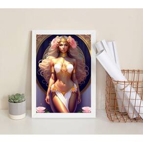 Quadro decorativo afrodite- arquétipo 33x24cm - com vidro Moldura: madeira preta Informações do produto tire todas as suas dúvidas no descritivo abaixo: decoração para quarto, sala, cozinha, escritório, área gourmet e muito mais. Chega de paredes vazias medidas - cada peça tem 33x24cm a4 . Material do papel - papel fotográfico brilhante de altíssima resolução acabamento - todos os quadros são acompanhados de vidro para proteção da imagem. - moldura em madeira maciça na cor preta ou branca conforme produto escolhido e pendurador . - os quadros são embalados de forma segura com plástico bolha com camada dupla de acordo com o tamanho dos quadros. Garantia - garantia de 3 meses. Meu quadro chegou. Como posso fixá-lo Você precisa apenas de um martelo e um prego, pois os quadros já vão acompanhados de penduradores. Esta é a forma mais indicada. Como posso limpar meu quadro A limpeza é feita como um móvel comum da sua casa. Apenas um pano seco ou espanador são suficientes para tal Ean: 7899688051120