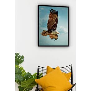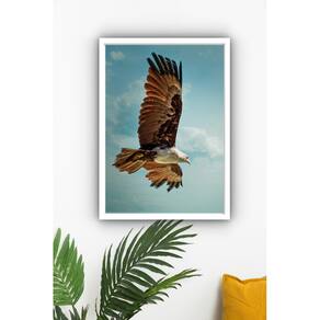 Quadro Decorativo Águia Voando Céu - 70x50cm - Cor: Moldura Branca