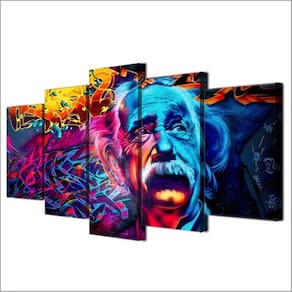 Quadro Decorativo Albert Einstein 5 peças em tecido 1