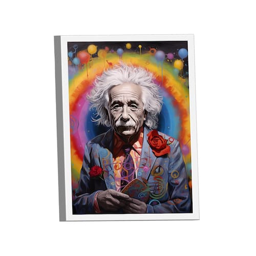 Quadro Albert Einstein Colorido -- BR ARTES Moldura Branca - Gigante 180x105 -
