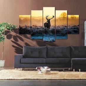 Quadro Decorativo Alce 5 partes 130x65 em tecido