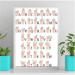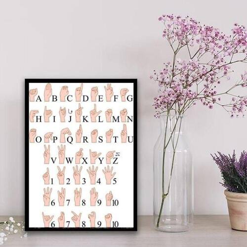 Quadro decorativo alfabeto de libras 45x34cm - com vidro Moldura: madeira branca Informações do produto tire todas as suas dúvidas no descritivo abaixo: decoração para quarto, sala, cozinha, escritório, área gourmet e muito mais. Chega de paredes vazias medidas - cada peça tem 45x34cm a3 . Material do papel - papel fotográfico brilhante de altíssima resolução acabamento - todos os quadros são acompanhados de vidro para proteção da imagem. - moldura em madeira maciça na cor preta e pendurador . - os quadros são embalados de forma segura com plástico bolha com camada dupla de acordo com o tamanho dos quadros. Garantia - garantia de 3 meses. Meu quadro chegou. Como posso fixá-lo Você precisa apenas de um martelo e um prego, pois os quadros já vão acompanhados de penduradores. Esta é a forma mais indicada. Como posso limpar meu quadro A limpeza é feita como um móvel comum da sua casa. Apenas um pano seco ou espanador são suficientes para tal Ean: 7891727092361