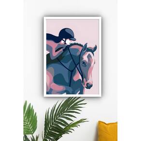 Quadro Decorativo Amazona Cavalo - 70x50cm - Cor: Moldura Branca