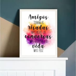 Quadro Decorativo Amigos, Risadas, Conversas, Vida 45X34Cm Tamanho: a3 45 x 34 Acabamento: película de acetato Moldura: madeira branca Informações do produto Decoração para quarto, sala, cozinha, escritório, área gourmet e muito mais. Chega de paredes vazias Medidas - cada peça tem 45x34cm a3 . Material do papel - papel fotográfico brilhante de altíssima resolução Acabamento - todos os quadros são acompanhados de uma película de acetato para proteção da imagem. - moldura em madeira maciça na cor preta ou branca e pendurador móvel que pode ser retirado facilmente caso deseje fixar com fita dupla face. - os quadros são embalados de forma segura com plástico bolha com camada dupla de acordo com o tamanho dos quadros. - de 3 meses Meu quadro chegou. Como posso fixá-lo Você precisa apenas de um martelo e um prego, pois os quadros já vão acompanhados de penduradores. Esta é a forma mais indicada. Caso prefira, você pode utilizar uma fita dupla face neste caso, sugerimos de alta qualidade para evitar que descole e seu quadro caia . Como posso limpar meu quadro A limpeza é feita como um móvel comum da sua casa. Apenas um pano seco ou espanador são suficientes para tal Marca: Não Informado Ean: 7892090474914