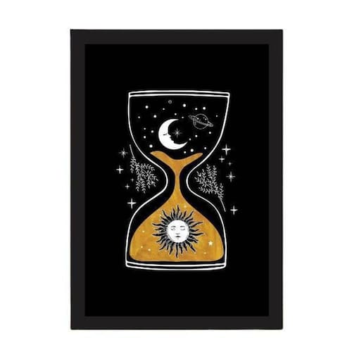 Quadro decorativo ampulheta universo 33x24cm - com vidro Moldura: madeira preta Informações do produto Decoração para quarto, sala, cozinha, escritório, área gourmet e muito mais. Chega de paredes vazias medidas - cada peça tem 33x24cm a4 . Material do papel - papel fotográfico brilhante de altíssima resolução Acabamento - todos os quadros são acompanhados de vidro para proteção da imagem. - Moldura em madeira maciça na cor preta e pendurador . - Os quadros são embalados de forma segura com plástico bolha com camada dupla de acordo com o tamanho dos quadros. - de 3 meses. Meu quadro chegou. Como posso fixá-lo Você precisa apenas de um martelo e um prego, pois os quadros já vão acompanhados de penduradores. Esta é a forma mais indicada. Como posso limpar meu quadro A limpeza é feita como um móvel comum da sua casa. Apenas um pano seco ou espanador são suficientes para tal Ean: 7895142208444