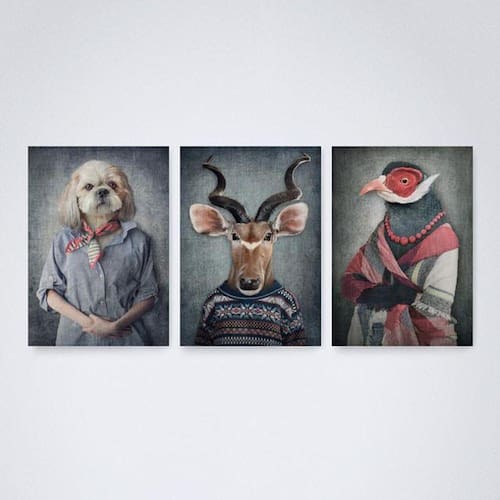 Com o tamanho de 30x20cm, esse quadro é perfeito para decorar ambientes diversos, como sala de estar, quarto, escritório e até mesmo espaços comerciais. Ele traz uma temática divertida e única, apresentando animais vestindo roupas de frio humanas. Essa combinação inusitada cria um visual encantador e cheio de personalidade.