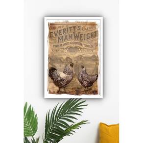 Quadro Decorativo Animais Fazenda Retrô - 70x50cm - Cor: Moldura Preta