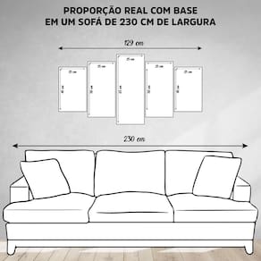 Tamanho total da composição com espaçamento: 129 cm x 63 cm. Peça central: 1 unidade de 25 cm x 63 cm Peças intermediárias: 2 unidades de 25 cm x 50 cm Peças laterais: 2 unidades de 25 cm x 40 cm Espaçamento entre as peças = 01 cm