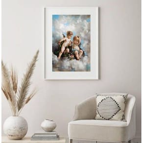 Quadro decorativo anjinhos querubins - 60x48cm Moldura: madeira preta Informações do produto tire todas as suas dúvidas no descritivo abaixo: decoração para quarto, sala, cozinha, escritório, área gourmet e muito mais. Chega de paredes vazias medidas - cada peça tem 60x48cm . Material do papel - papel fotográfico brilhante de altíssima resolução acabamento - todos os quadros são acompanhados de vidro para proteção da imagem. - moldura em madeira maciça na cor preta ou branca conforme produto escolhido e pendurador. - paspatur branco com 7cm de largura - os quadros são embalados de forma segura com plástico bolha com camada dupla de acordo com o tamanho dos quadros. Garantia - garantia de 3 meses. Meu quadro chegou. Como posso fixá-lo Você precisa apenas de um martelo e um prego, pois os quadros já vão acompanhados de penduradores. Esta é a forma mais indicada. Como posso limpar meu quadro A limpeza é feita como um móvel comum da sua casa. Apenas um pano seco ou espanador são suficientes para tal Ean: 7894753372797