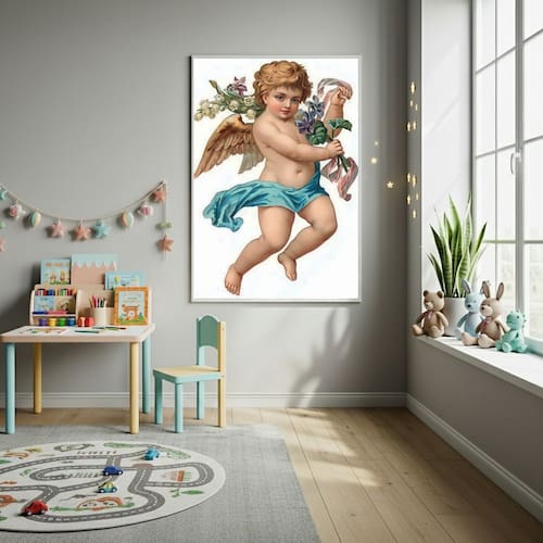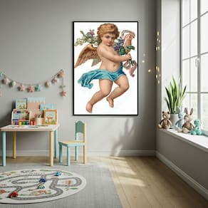 Quadro Decorativo Anjo Querubim Vintage - 70x50cm - Cor: Moldura Branca