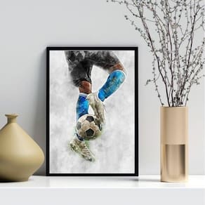 Quadro decorativo aquarela futebol- azul 45x34cm - com vidro Moldura: madeira preta Informações do produto tire todas as suas dúvidas no descritivo abaixo: decoração para quarto, sala, cozinha, escritório, área gourmet e muito mais. Chega de paredes vazias medidas - cada peça tem 45x34cm a3 . Material do papel - papel fotográfico brilhante de altíssima resolução acabamento - todos os quadros são acompanhados de vidro para proteção da imagem. - moldura em madeira maciça na cor preta ou branca conforme produto escolhido e pendurador . - os quadros são embalados de forma segura com plástico bolha com camada dupla de acordo com o tamanho dos quadros. Garantia - garantia de 3 meses. Meu quadro chegou. Como posso fixá-lo Você precisa apenas de um martelo e um prego, pois os quadros já vão acompanhados de penduradores. Esta é a forma mais indicada. Como posso limpar meu quadro A limpeza é feita como um móvel comum da sua casa. Apenas um pano seco ou espanador são suficientes para tal Ean: 7896595603763