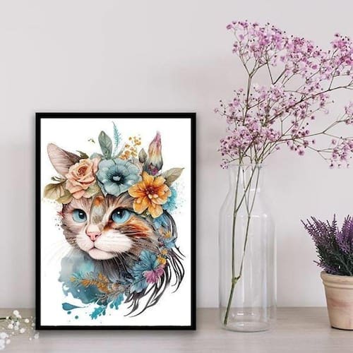 Quadro decorativo aquarela gato flores 45x34cm - com vidro Moldura: madeira preta Informações do produto tire todas as suas dúvidas no descritivo abaixo: decoração para quarto, sala, cozinha, escritório, área gourmet e muito mais. Chega de paredes vazias medidas - cada peça tem 45x34cm a3 . Material do papel - papel fotográfico brilhante de altíssima resolução acabamento - todos os quadros são acompanhados de vidro para proteção da imagem. - moldura em madeira maciça na cor preta e pendurador . - os quadros são embalados de forma segura com plástico bolha com camada dupla de acordo com o tamanho dos quadros. Garantia - garantia de 3 meses. Meu quadro chegou. Como posso fixá-lo Você precisa apenas de um martelo e um prego, pois os quadros já vão acompanhados de penduradores. Esta é a forma mais indicada. Como posso limpar meu quadro A limpeza é feita como um móvel comum da sua casa. Apenas um pano seco ou espanador são suficientes para tal