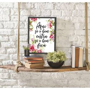 Com o Quadro Decorativo da Quadros On-Line você transforma a decoração do seu ambiente, com beleza e bom gosto. Preencha aquela parede vazia com um quadro de alta qualidade, papel fotográfico brilhante de altíssima resolução e moldura em madeira maciça. Para maior proteção, a peça ainda conta com uma película de acetato. Características: - Papel fotográfico brilhante de altíssima resolução - Película de acetato para proteção da imagem - Moldura em madeira maciça - Pendurador móvel que pode ser retirado facilmente - Pode ser fixado com fita dupla face Especificações técnicas Marca: Quadros On-Line Modelo: Floral Aqui Só O Bem Entra, Só O Bem Fica Material: Papel fotográfico brilhante Acabamento: Película de acetato Moldura: Madeira Cor moldura: Preto Tamanho: 45 x 34 cm A3 Fixação: Prego ou fita dupla face de alta qualidade Acompanha pendurador: Sim : 3 meses Dica de limpeza A limpeza é feita como um móvel comum da sua casa. Apenas um pano seco ou espanador são suficientes para tal. Marca: Não Informado Ean: 7892090319871