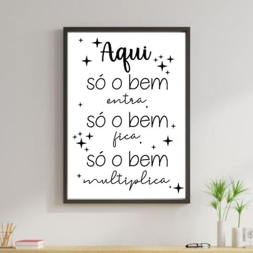 Quadro Decorativo Aqui Só o Bem Entra - Tamanho: A4 (20 x 30) / Acabamento: Película de acetato / Moldura: Madeira preta
