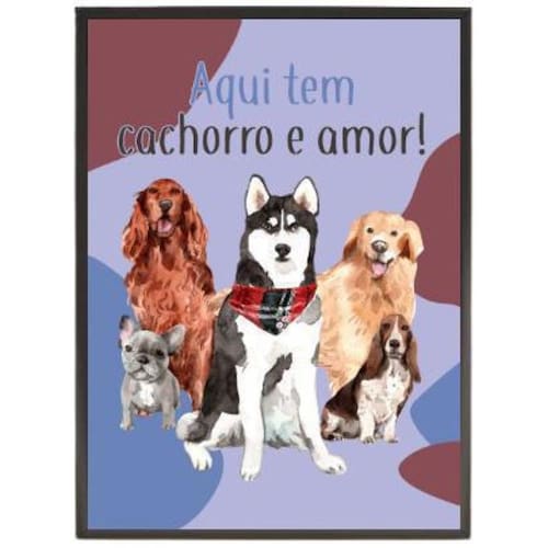 Quadro Decorativo Aqui Tem Cachorro E Amor 20X30Cm Tamanho: a4 20 x 30 Acabamento: película de acetato Moldura: madeira preta Decoração para quarto, sala, cozinha, escritório, área gourmet e muito mais. Chega de paredes vazias medidas - cada peça tem 34x23cm a4 . Material do papel - papel fotográfico brilhante de altíssima resolução acabamento - todos os quadros são acompanhados de uma película de acetato para proteção da imagem. - moldura em madeira maciça na cor preta e pendurador móvel que pode ser retirado facilmente caso deseje fixar com fita dupla face. - os quadros são embalados de forma segura com plástico bolha com camada dupla de acordo com o tamanho dos quadros. Como posso fixá-lo Você precisa apenas de um martelo e um prego, pois os quadros já vão acompanhados de penduradores. Esta é a forma mais indicada. Caso prefira, você pode utilizar uma fita dupla face neste caso, sugerimos de alta qualidade para evitar que descole e seu quadro caia . Limpeza é feita como um móvel comum da sua casa. Apenas um pano seco ou espanador são suficientes para tal.