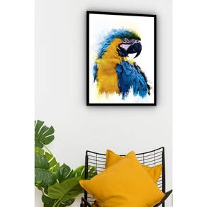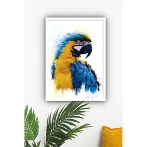 Quadro Decorativo Arara Aquarela - 70x50cm - Cor: Moldura Preta