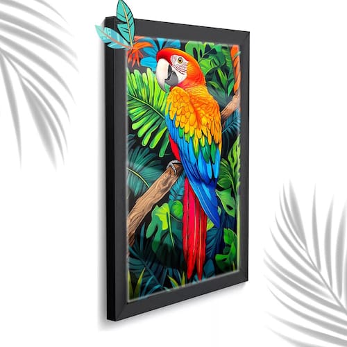 Descrição do produto: Traga a beleza vibrante da natureza para o seu ambiente com este quadro decorativo de Arara Macau. Com dimensões de 33x25 cm e acabamento em vidro, é perfeito para salas e quartos, adicionando um toque de cor e vida ao seu espaço. Transforme seu ambiente com esta peça deslumbrante e cheia de energia! Benefícios:Durabilidade: Moldura resistente e vidro que protege contra poeira e danosEstilo: Adiciona beleza e personalidade ao seu espaço, criando um ambiente perfeito.Facilidade: Pronto para pendurar, sem necessidade de montagem Características:01 Peça(s)Com vidro.Moldura feita de madeira maciça disponíveis nas cores:Preta, Branca, Rosa e Azul TurquesaImagem A4 de alta qualidade protegida contra umidade. Dimensões:Moldura: 25 cm L. 33,7 cm AlturaImagem: 21 cm L. 30 cm AlturaVidro: 0,3 mm Espessura Marca: Estação Vest