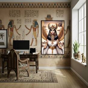 Quadro Decorativo Arquétipo Cleópatra Deusa Ísis - 70x50cm - Cor: Moldura Preta