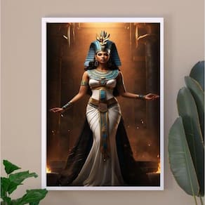 Quadro decorativo arquétipo cleópatra negra 33x24cm Moldura: madeira branca Informações do produto tire todas as suas dúvidas no descritivo abaixo: decoração para quarto, sala, cozinha, escritório, área gourmet e muito mais. Chega de paredes vazias medidas - cada peça tem 33x24cm a4 . Material do papel - papel fotográfico brilhante de altíssima resolução acabamento - todos os quadros são acompanhados de uma película de acetato para proteção da imagem. - os quadros são embalados de forma segura com plástico bolha com camada dupla de acordo com o tamanho dos quadros. Garantia - garantia de 3 meses. Meu quadro chegou. Como posso fixá-lo Você precisa apenas de um martelo e um prego, pois os quadros já vão acompanhados de penduradores. Esta é a forma mais indicada. Caso prefira, você pode utilizar uma fita dupla face neste caso, sugerimos de alta qualidade para evitar que descole e seu quadro caia . Como posso limpar meu quadro A limpeza é feita como um móvel comum da sua casa. Apenas um pano seco ou espanador são suficientes para tal