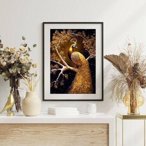 Quadro decorativo arquétipo pavão ouro - 60x48cm
