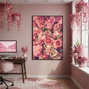 Quadro Decorativo Arranjo Floral Rosa 70x50cm Mold Branca