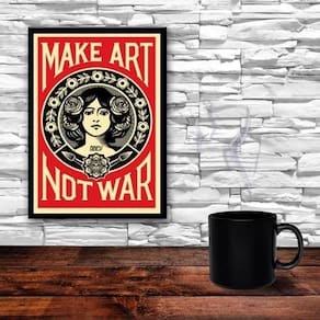 Quadro Decorativo Art Nouveau Make Art Not War 34x23cm - Moldura Branca Tamanho: A4 20 x 30 Acabamento: Película de acetato Moldura: Madeira Branca INFORMAÇÕES DO PRODUTO