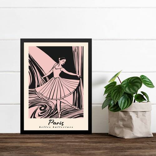 Quadro Decorativo Arte Bailarina Rosa - Paris 45x34cm - com vidro - Cor: Moldura branca