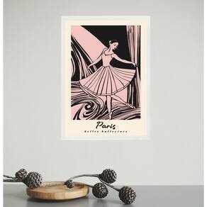Quadro Decorativo Arte Bailarina Rosa - Paris 45x34cm - Cor: Moldura preta