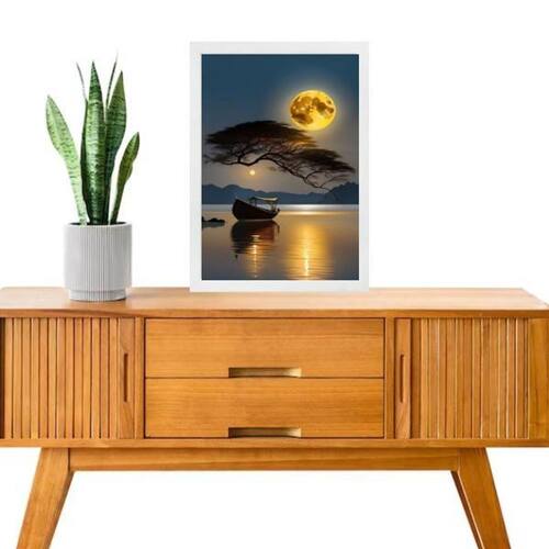 Quadro decorativo arte barco rio lua cheia 24x18cm - com vidro Cor: moldura branca Informações do produto tire todas as suas dúvidas no descritivo abaixo: decoração para quarto, sala, cozinha, escritório, área gourmet e muito mais. Chega de paredes vazias medidas - cada peça tem 24x18cm a5 . Material do papel - papel fotográfico brilhante de altíssima resolução acabamento - todos os quadros são acompanhados de vidro para proteção da imagem. - moldura em madeira maciça na cor preta ou branca conforme produto escolhido e pendurador . - os quadros são embalados de forma segura com plástico bolha com camada dupla de acordo com o tamanho dos quadros. - de 3 meses. Meu quadro chegou. Como posso fixá-lo Você precisa apenas de um martelo e um prego, pois os quadros já vão acompanhados de penduradores. Esta é a forma mais indicada. Como posso limpar meu quadro A limpeza é feita como um móvel comum da sua casa. Apenas um pano seco ou espanador são suficientes para tal Marca: Não Informado