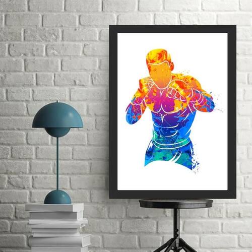 Quadro decorativo arte boxe - boxeador 24x18cm Cor: moldura branca Informações do produto tire todas as suas dúvidas no descritivo abaixo: decoração para quarto, sala, cozinha, escritório, área gourmet e muito mais. Chega de paredes vazias medidas - cada peça tem 24x18cm a5 . Material do papel - papel fotográfico brilhante de altíssima resolução acabamento - todos os quadros são acompanhados de uma película de acetato para proteção da imagem. - os quadros são embalados de forma segura com plástico bolha com camada dupla de acordo com o tamanho dos quadros. Garantia - garantia de 3 meses. Meu quadro chegou. Como posso fixá-lo Você precisa apenas de um martelo e um prego, pois os quadros já vão acompanhados de penduradores. Esta é a forma mais indicada. Caso prefira, você pode utilizar uma fita dupla face neste caso, sugerimos de alta qualidade para evitar que descole e seu quadro caia . Como posso limpar meu quadro A limpeza é feita como um móvel comum da sua casa. Apenas um pano seco ou espanador são suficientes para tal