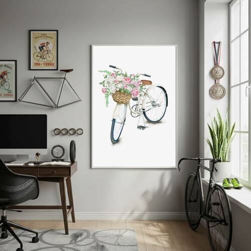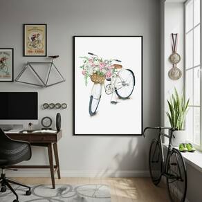 Quadro Decorativo Arte De Uma Bicicleta-70x50cm - Cor: Moldura Branca