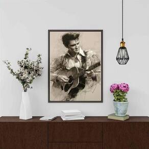 Quadro decorativo arte elvis presley - violão 24x18cm - com vidro Cor: moldura branca Informações do produto tire todas as suas dúvidas no descritivo abaixo: decoração para quarto, sala, cozinha, escritório, área gourmet e muito mais. Chega de paredes vazias medidas - cada peça tem 24x18cm a5 . Material do papel - papel fotográfico brilhante de altíssima resolução acabamento - todos os quadros são acompanhados de vidro para proteção da imagem. - moldura em madeira maciça na cor preta ou branca conforme produto escolhido e pendurador . - os quadros são embalados de forma segura com plástico bolha com camada dupla de acordo com o tamanho dos quadros. Garantia - garantia de 3 meses. Meu quadro chegou. Como posso fixá-lo Você precisa apenas de um martelo e um prego, pois os quadros já vão acompanhados de penduradores. Esta é a forma mais indicada. Como posso limpar meu quadro A limpeza é feita como um móvel comum da sua casa. Apenas um pano seco ou espanador são suficientes para tal