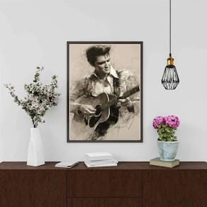 Quadro decorativo arte elvis presley - violão 33x24cm - com vidro Cor: moldura preta Informações do produto tire todas as suas dúvidas no descritivo abaixo: decoração para quarto, sala, cozinha, escritório, área gourmet e muito mais. Chega de paredes vazias medidas - cada peça tem 33x24cm a4 . Material do papel - papel fotográfico brilhante de altíssima resolução acabamento - todos os quadros são acompanhados de vidro para proteção da imagem. - moldura em madeira maciça na cor preta ou branca conforme produto escolhido e pendurador . - os quadros são embalados de forma segura com plástico bolha com camada dupla de acordo com o tamanho dos quadros. Garantia - garantia de 3 meses. Meu quadro chegou. Como posso fixá-lo Você precisa apenas de um martelo e um prego, pois os quadros já vão acompanhados de penduradores. Esta é a forma mais indicada. Como posso limpar meu quadro A limpeza é feita como um móvel comum da sua casa. Apenas um pano seco ou espanador são suficientes para tal