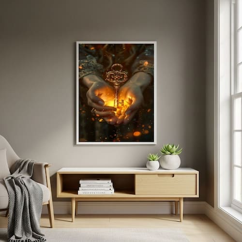 Quadro Decorativo Arte Inspirada Chave Mágica - 70x50cm - Cor: Moldura Preta