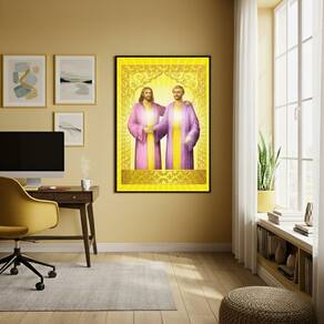 Quadro Decorativo Arte Jesus Cristo e Saint Germain -70x50cm - Cor: Moldura Branca